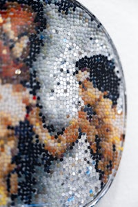 synthetic resin, laser-cut and engraved mirror plexiglass, chain