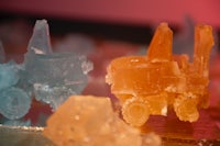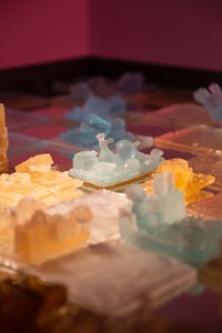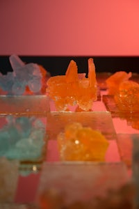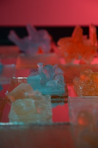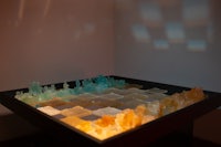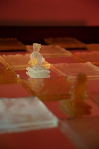Family strategies’, focuses on the parenting relationships. The two squares of the chessboard intend to be the portray the symbolic struggle of the mother and father as a tactician against each other for their purposes. The 65x65 cm chessboard figures are unique, not the usual shapes, and are made of sugar.The symbolism (love) and material (consumable) of sugar appear at the same time.