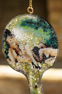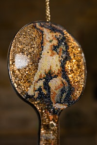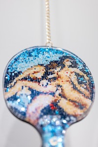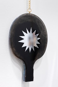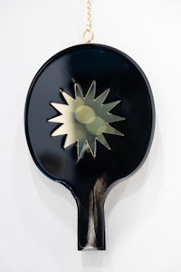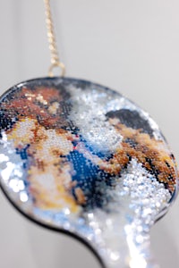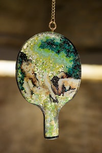synthetic resin, laser-cut and engraved mirror plexiglass, chain