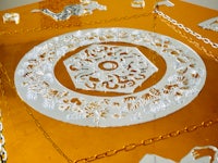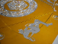 The fourth piece of the goddess games is a floating poker table and its accompanying poker accessories. This game form embodies Athena as the wise and cunning goddess who skillfully plays the cards of life’s mys- teries. In the middle of the table, adorned with mirrors and colorful plexiglass, there is a mirrored box containing the necessary tools for the card game, featuring symbols that represent important areas of life: social environment, family, relationships, work, etc.