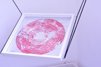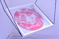 In the interactive labyrinth game, the viewer can find illustrations of locations printed with red offset paint. The base is a reflective surface, mirroring its environment, the society which we are part of. Two different sized circles are within the frame. These, along with the outer square possess a symbolic importance which oppose each other, as the circles represent limitlessness, while the square represents boundaries. This dichotomy carries within itself the union of the spiritual and physical being. The tiny, turquoise balls represent all the people surrounding us, the society itself.